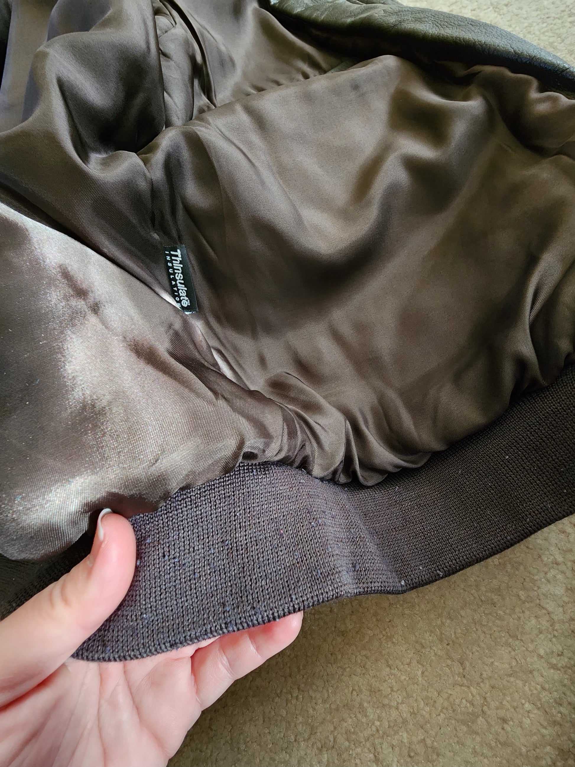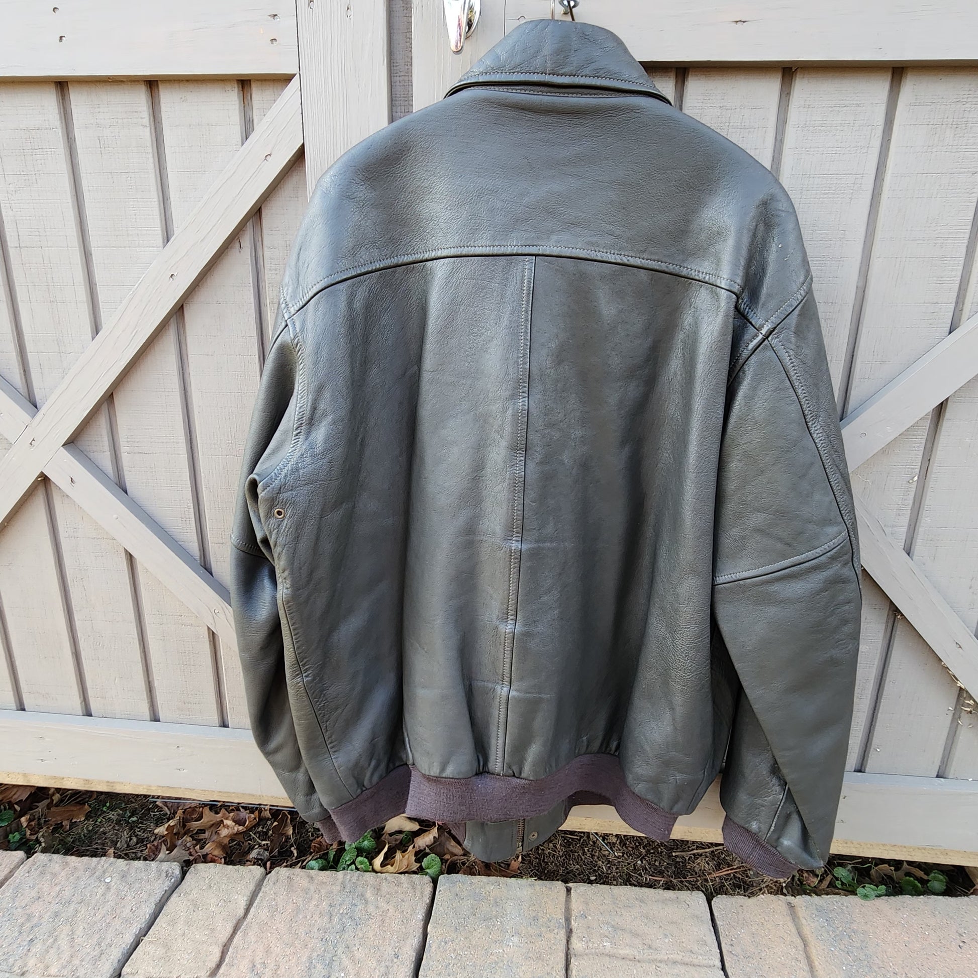 Vintage L.L. Bean 2X Tall Goatskin Leather Bomber Jacket Green/Brownish Aviator